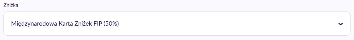 PKP Intercity sells tickets online with FIP 50 discount. During the connection search, the option “50% MKZ-FIP” must be selected as a discount for the respective person.